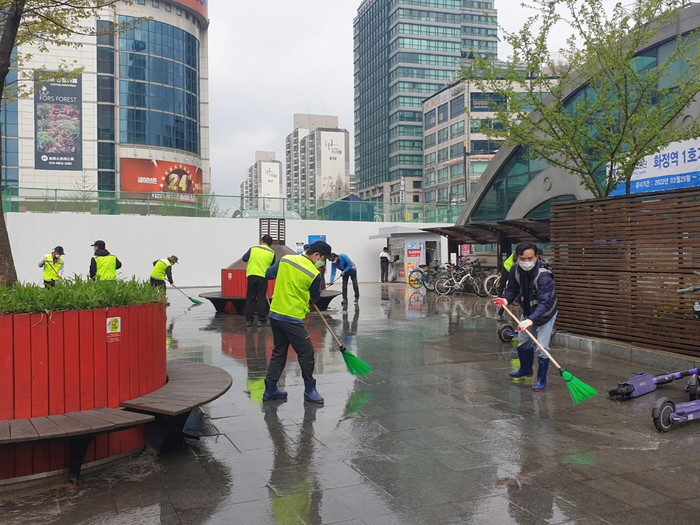 이날은 노면살수차를 동원해 화정역 문화광장에 겨우내 묵은 먼지를 물청소로 말끔히 씻어내는 한편, 화정2동 통장협의회, 덕양구 가로청소환경관리원, 구청 청소기동반, 청소농정과 직원 등 50여 명이 화정역 광장 일대(덕양구청~화정중앙공원 구간)의 무단투기 쓰레기, 담배꽁초 등을 집중 수거했다.