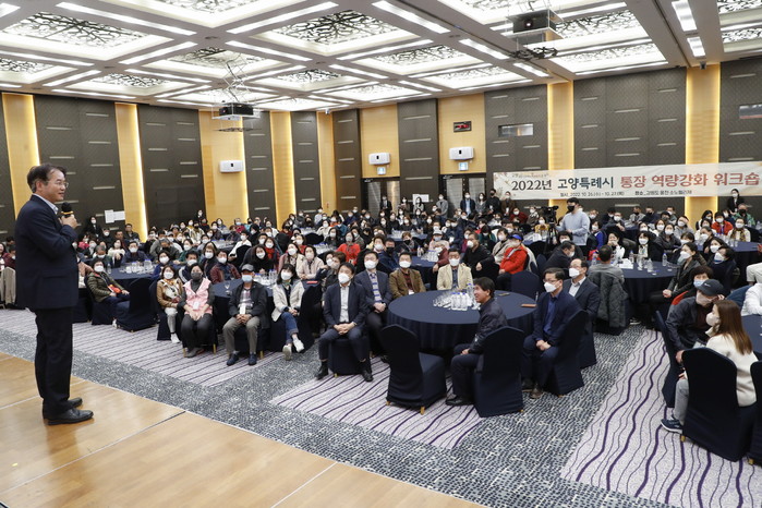 지난 2년간 코로나19로 중단되었던 고양시 통장워크숍은 코로나19 확산 방지 등 행정 최일선에서 애써 온 통장의 노고 격려 및 시정방향에 대한 소통을 위해 기획됐으며, 고양시 44개동 통장 및 동장 320명이 참여했다.