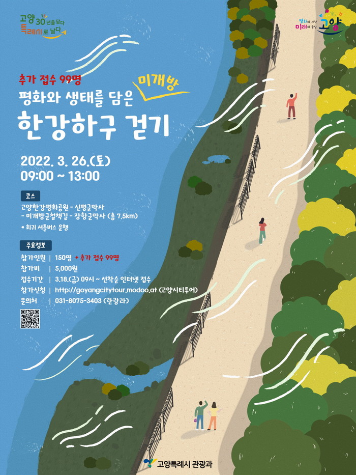 참가를 희망하는 사람은 3월 18일(금) 오전9시부터 고양시티투어 홈페이지를 통해 접수받을 예정이며, 참가비는 5,000원이다. 자세한 사항 문의는 고양시 관광과로 하면 된다.
