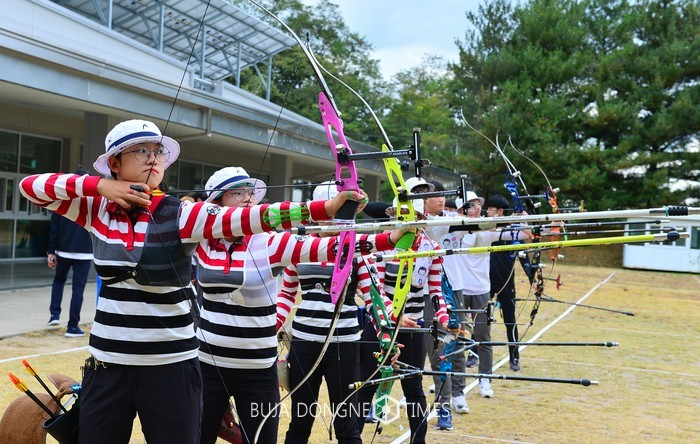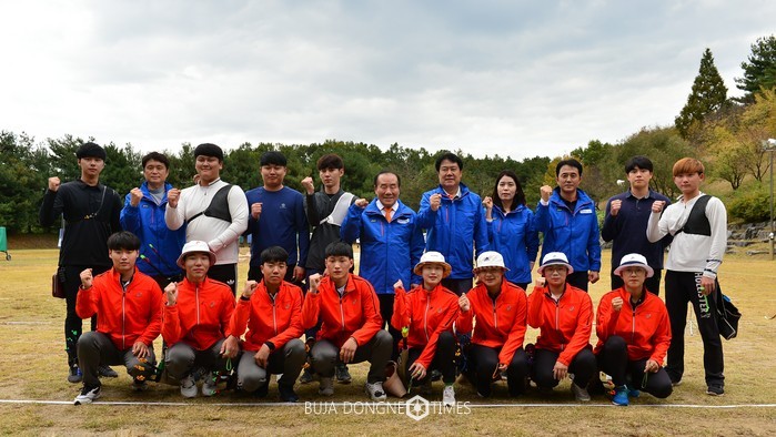 | △장휘국 광주시교육감이 10월 19일 충주 김수녕 양궁장을 방문해 제98회 전국체육체육대회에 참가하는 광주 양궁선수들을 격려했다 |