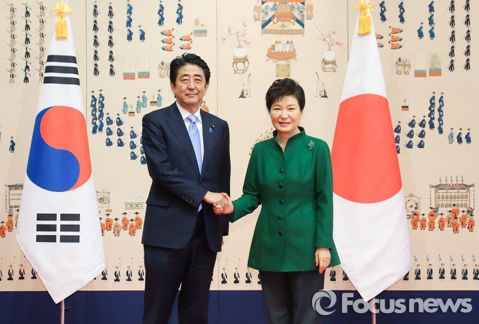 (서울=포커스뉴스) 박근혜 대통령과 아베 신조(安倍晋三) 일본 총리는 한일정상회담에서 위안부 피해자 문제를 조속히 타결하기 위해 협의를 가속화하는데 합의했다.