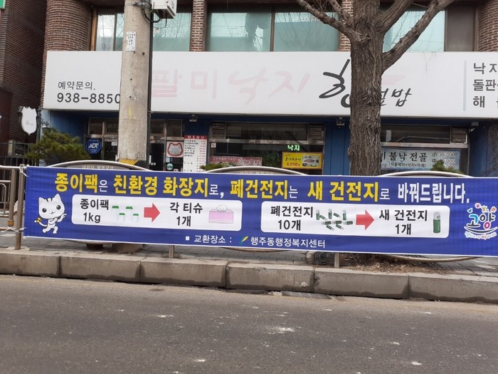 행주동은 다른 재활용품에 비해 재활용 실적이 현저히 낮아 분리배출 장려 및 재활용률 제고가 필요한 폐건전지와 종이팩의 재활용을 활성화하기 위해 매주 수요일 ‘재활용품 집중 수거의 날’을 운영해왔다.