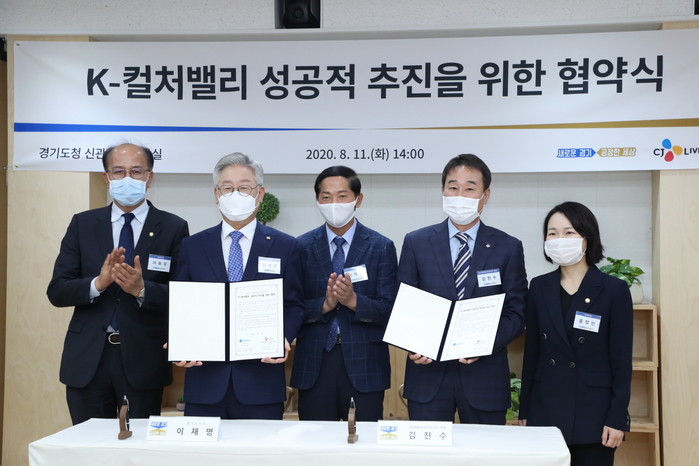 경기도와 ㈜CJ라이브시티는‘K-컬처밸리의 성공적 추진을 위한 협약’을 경기도청에서 11일 체결했다. 이 자리에는 이재명 경기도지사, 이재준 고양시장, 박근희 CJ그룹 부회장, 김천수 ㈜CJ라이브시티 대표, 홍정민 국회의원, 이용우 국회의원, 이헌욱 경기주택도시공사 사장 등이 참석 했다.