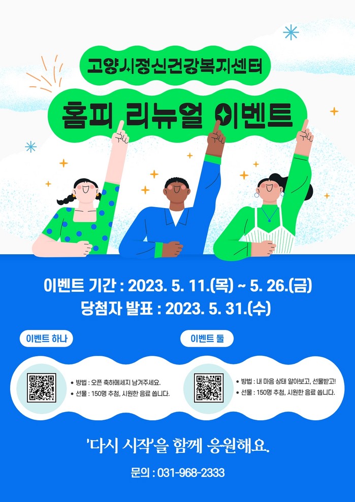 5월 11일 목요일부터 5월 26일 금요일까지 고양시정신건강복지센터 홈페이지에서 참여할 수 있으며, 당첨자 발표일은 5월 31일 수요일이다. 추첨을 통해 총 300명에게 모바일 커피 기프티콘을 선물할 예정이다.