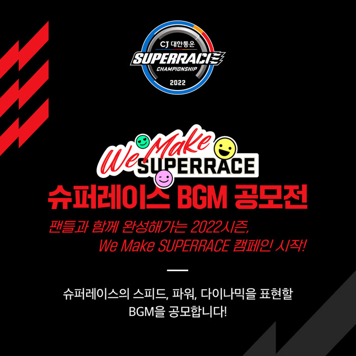 한편, 슈퍼레이스 조직위원회는 ‘2022 CJ대한통운 슈퍼레이스 챔피언십’ 시즌 일정을 발표하며, 팬들과의 만남을 준비하고 있다. 지난 2년간 코로나19 어려움에도 불구하고 뜨거운 성원과 애정을 보내준 모터스포츠 팬들에게 보답하기 위해, 올해는 온라인 공모전뿐만 아니라 슈퍼레이스 챔피언십 경기장을 찾는 팬들도 ‘We Make SUPERRACE’ 캠페인에 직접 참여할 수 있는 프로그램도 선보일 예정이다.