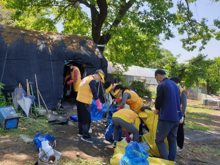 이날 대상으로 선정된 어르신은 자연부락의 허름한 움막 속 작은 방 한 칸에 거주하는 기초생활수급자로, 집안에는 불필요한 물건이 잔뜩 쌓여 있어 노인 혼자서는 정돈이 힘든 상태인데다 특히 화장실이 없는 구조로 기온이 높아지는 시기에는 악취가 점점 심해져 환경개선이 시급한 상황이었다.