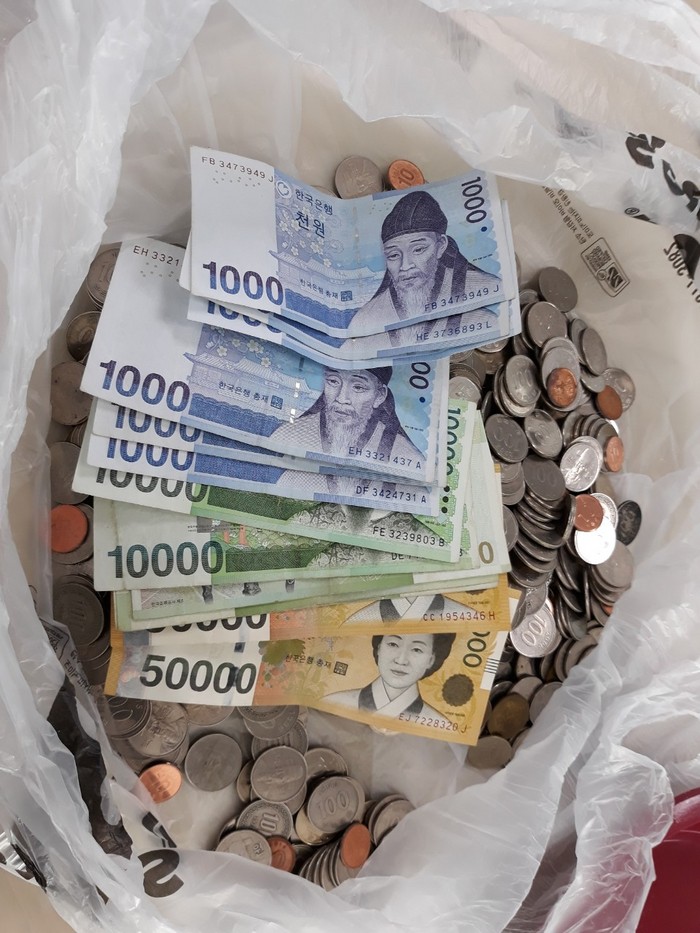 봉투 안에는 오만 원짜리 2개, 만 원짜리 5개, 천 원짜리 6개와 많은 동전이 들어있었다. 할머니는 손녀가 몇 년 동안 모은 저금통을 깨서 좋은 일에 써달라고 가져왔다고 설명했다.