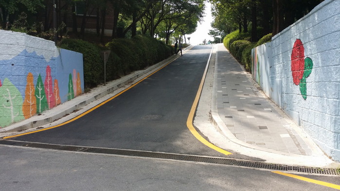 이에 시는 지난 3월 관할 경찰서와 교통안전심의를 거쳐 협의 내용을 설계에 반영하고, 지난 5월 중순부터 약 4천만 원의 예산을 들여 공원관리사무소 옆과 배수지 진입로 등 2개 구간에 개선 사업을 진행했다.