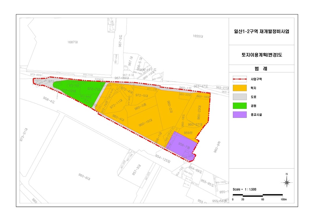 일산1-2구역은 일산동 960-16번지 일원에 위치하고 아파트 단지에 둘러싸여 있는 저층 주거 지역으로 2015년 정비구역 지정 고시된 이후 조합 임원 해임 등 내부 갈등으로 사업추진에 어려움을 겪어왔던 구역으로 이번 심의 통과로 정비사업 추진에 탄력을 받을 것으로 기대된다.