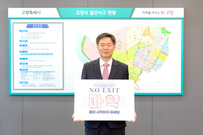 [부자동네타임즈 김인수기자] 고양특례시 정윤식 일산서구청장이 지난 16일 마약 범죄 예방을 위한 ‘NO EXIT’캠페인에 동참했다.