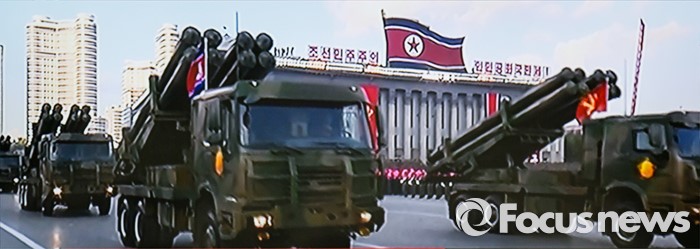 | △ 북한은 지난 10월 노동당 창건 70주년 기념 열병식을 생중계하면서 "다종화되고 소형화된 핵탄두들을 탑재한 전략 로켓을 공개했다"고 말해 수소폭탄 개발을 하고 있는 것 아니냐는 관측이 나왔었다. 사진은 이날 김일성 광장을 행진하는 신형 방사포. <사진출처=TV조선 캡쳐> 포커스포토 photo@focus.kr |