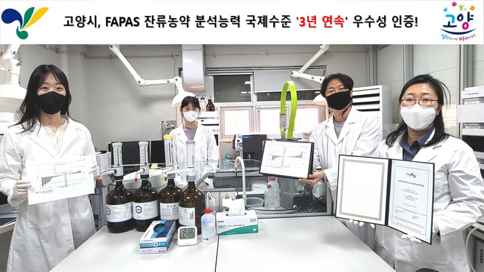 [부자동네타임즈 김인수기자] 고양시는 고양시 농업기술센터가 2022년 국제비교숙련도 평가에 참여해 ‘3년 연속’ 우수 평가를 받았다고 31일 밝혔다. 이번 평가는 전 세계 30개 분석기관이 참여했으며 고양시 농업기술센터는 ‘3년 연속 만족’ 등급을 받음으로써 분석능력을 국제적으로 인정받았다.