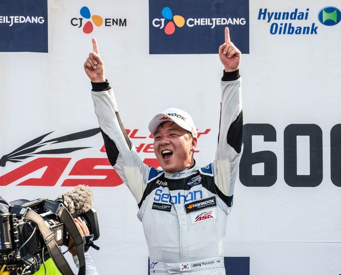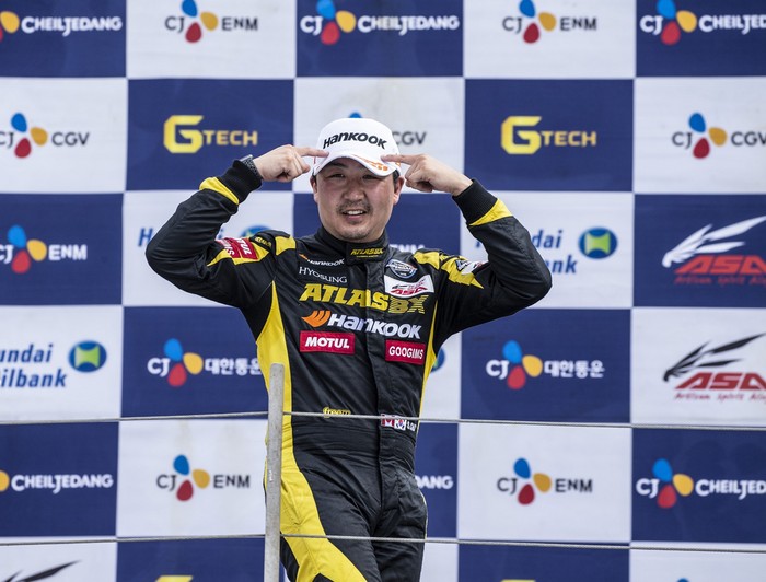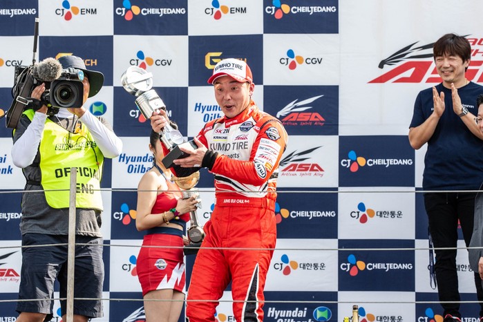 [사진설명] 정의철이 지난 9월 열린 슈퍼레이스 챔피언십 7라운드 경기에서 ASA 6000 클래스 2위를 차지한 뒤 트로피를 들고 기뻐하고 있다.