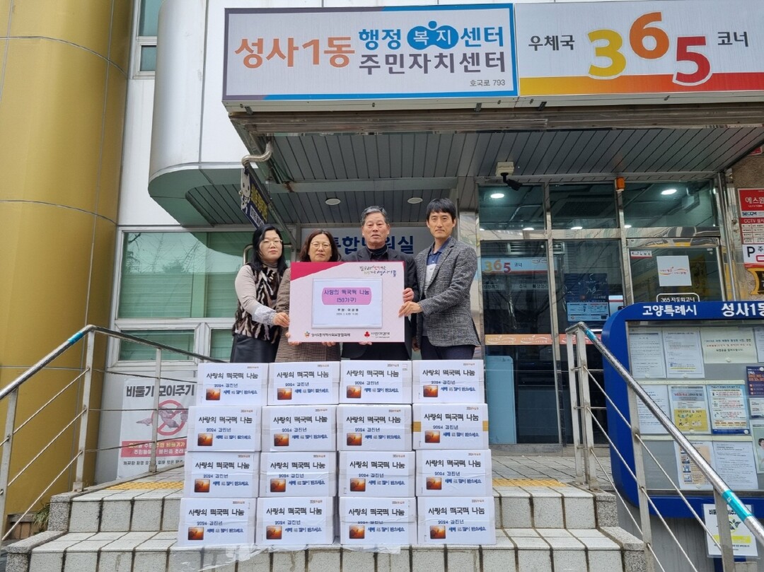 최숙 성사1동장은 “어려운 지역주민들을 위해 나눔을 실천해 주신 기부자께 감사드린다.”라며 “명절에 소외되는 이웃이 없도록 취약계층 지원에 힘쓰겠다.”라고 말했다.