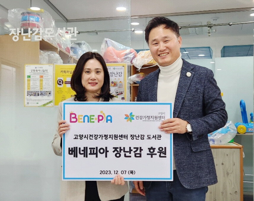 고양시건강가정지원센터 김나연 센터장은 “최신 장난감을 기부해주신 베네피아에 감사드린다. 고양시 아이들이 공동육아나눔터에서 즐거운 시간을 보낼 수 있도록 노력하겠다.”고 화답했다.