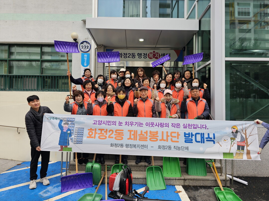 [부자동네타임즈 = 김인수 기자] 고양특례시 덕양구 화정2동은 지난 12일 동행정복지센터에서‘내 집 앞, 내 점포 앞 눈 치우기’ 운동에 자발적인 참여를 다짐하는 제설봉사단 발대식을 개최했다.