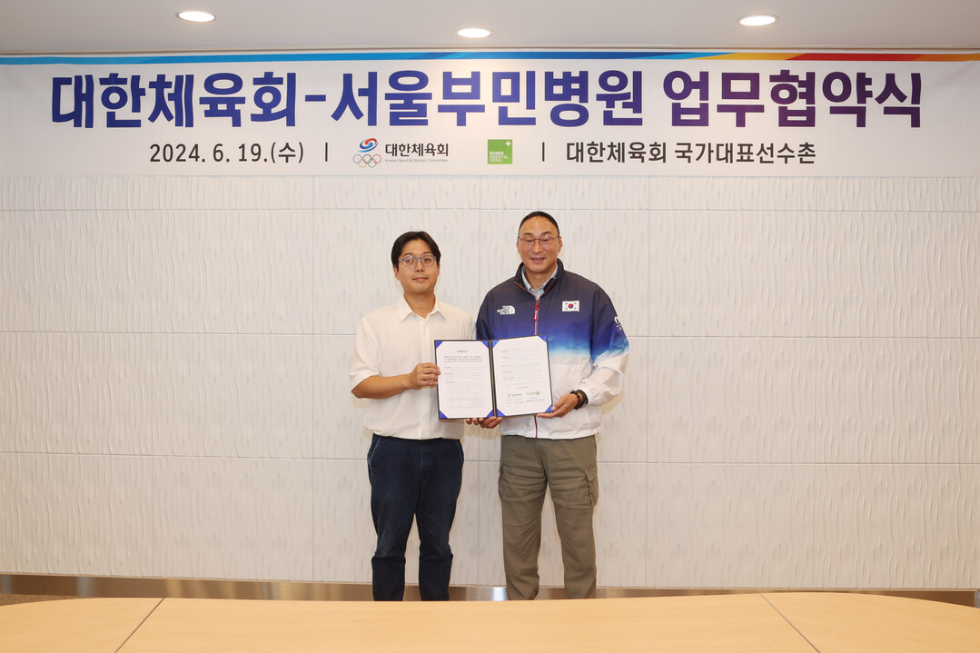 [부자동네타임즈 = 김인수 기자] 대한체육회(회장 이기흥)는 6월 19일(수) 서울부민병원(병원장 하용찬)과 대한체육회 소속의 국가대표 선수 및 지도자와 임직원들의 신속한 의료 서비스 및 치료 지원을 위한 의료협약을 체결했다.