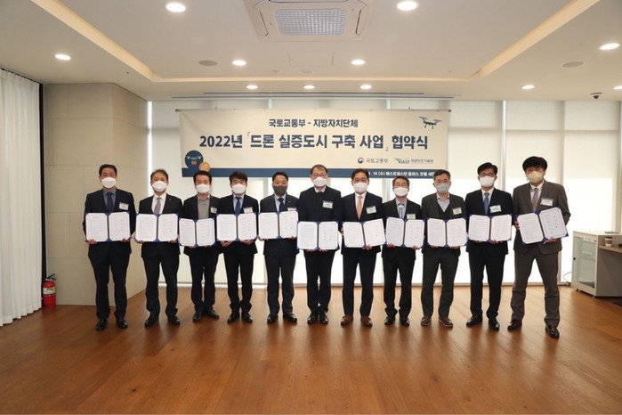지난 16일 국토부, 항공안전기술원 관계자 및 실증도시 선정 사업자 등이 참석한 가운데 협약식 및 착수보고회가 개최됐다. 이날 실증사업 발표 또한 이루어졌다. 이를 기점으로 각 선정된 지자체들은 2022년 드론 실증도시 구축사업을 추진할 방침이다.