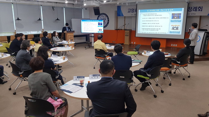 시는 지난 18일 일자리창출위원, 일자리 관련 공무원 등 40여명이 참석한 가운데 고양시정연수원 가와지볍씨홀에서 제5기 고양시 일자리창출위원회 정례회를 실시했다. 이 날 정례회는 코로나19 확산 방지를 위해 참석 인원을 최소화 해 생활 속 거리두기 방식에 따라 진행됐다.
