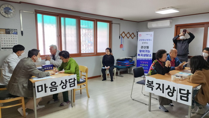 [부자동네타임즈 김인수기자] 고양특례시 관산동 행정복지센터는 지난 3월 27일 관산1 경로당에서 고양정신병원, 원당종합사회복지관과 함께 찾아가는 복지상담소를 운영했다.