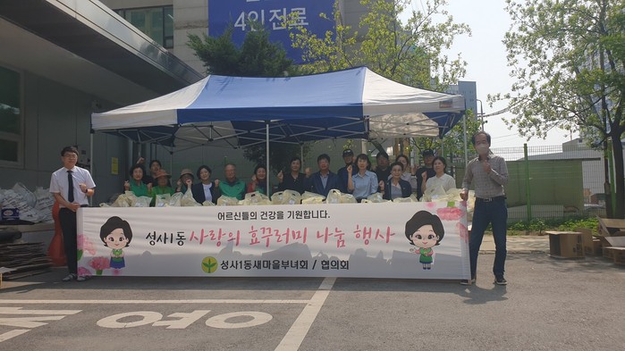 [부자동네타임즈 김인수기자] 고양특례시 성사1동 새마을부녀회는 지난 5월 11일에 통장협의회와 함께 관내 취약계층 어르신들께 사랑의 효 꾸러미를 전달했다.