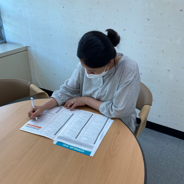 [사진 설명] 양육태도검사를 하고 있는 양육자의 모습.