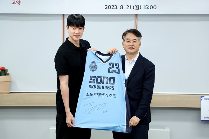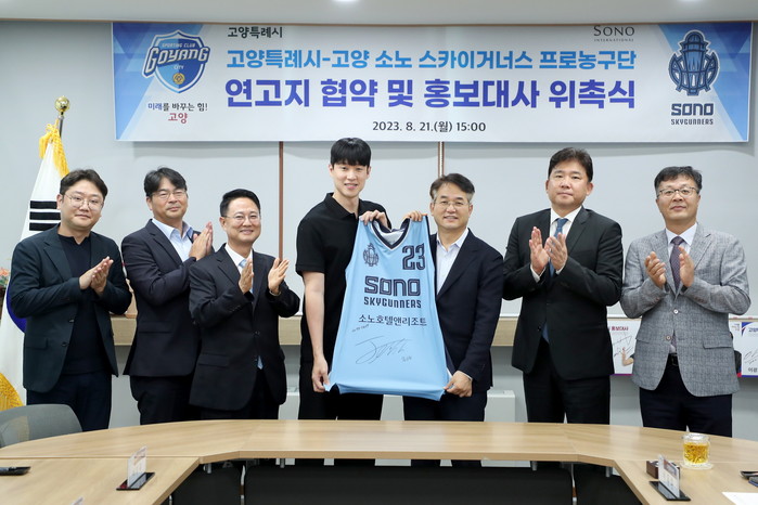 이날 협약식에는 이동환 고양특례시장과 시 관계자, ㈜소노인터내셔널 이광수 대표이사, 이기완 농구단 단장, 김승기 감독, 전성현 선수 등이 참석했다.
