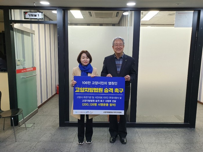 고양시는 지난 1년 반 동안 조례 제정, 추진위원회 구성, 범시민 서명운동 등 고양지방법원 승격을 준비해 왔다. 6개월 남짓한 짧은 기간임에도 시민 20만 명이 서명운동에 동참했다.