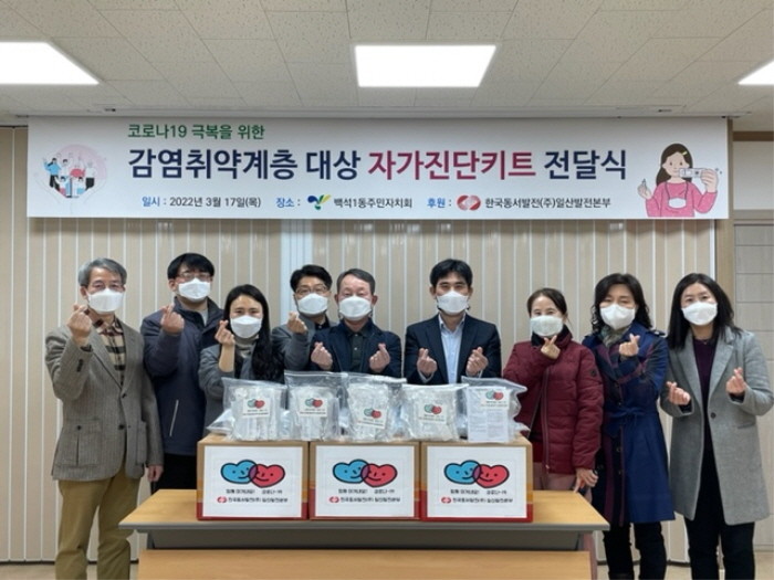 백석1동 주민자치회 이석구 회장은 “고양시에서도 하루 만 명이 넘는 확진자가 발생하고 있어 선제적 검사가 필수인 시기이나 형편이 어려운 이웃들에게는 비용 부담이 컸다. 이렇게 실질적인 후원으로 나눔을 실천해 주신 한국동서발전(주)일산발전본부에 감사드린다”고 답했다.