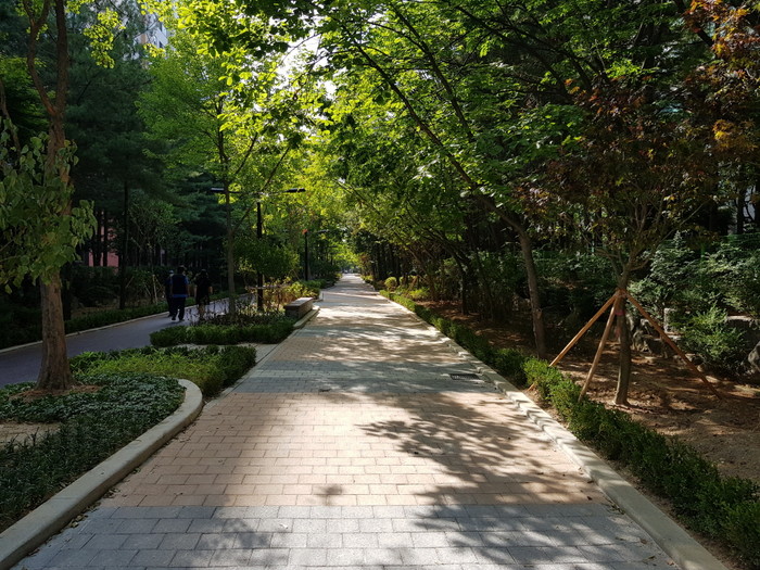 이에 따라 보행자도로에 녹지공간을 확충해 흰말채나무, 병꽃나무, 철쭉 등 관목류부터 구절초, 옥잠화 등 초화류까지 다층식재함으로써 계절별 다양한 꽃과 경관을 볼 수 있도록 도심숲을 조성하고 있다.