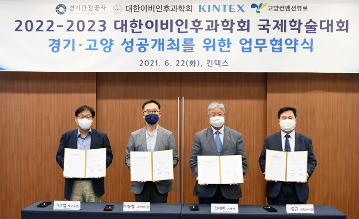 [부자동네타임즈 김인수기자] 고양시는 지난 6월 22일 ‘2022~2023 대한이비인후과학회 춘계 국제학술대회’의 성공적 개최를 위해 고양컨벤션뷰로, 대한이비인후과학회, 경기관광공사, 킨텍스가 협약을 맺었다고 밝혔다.