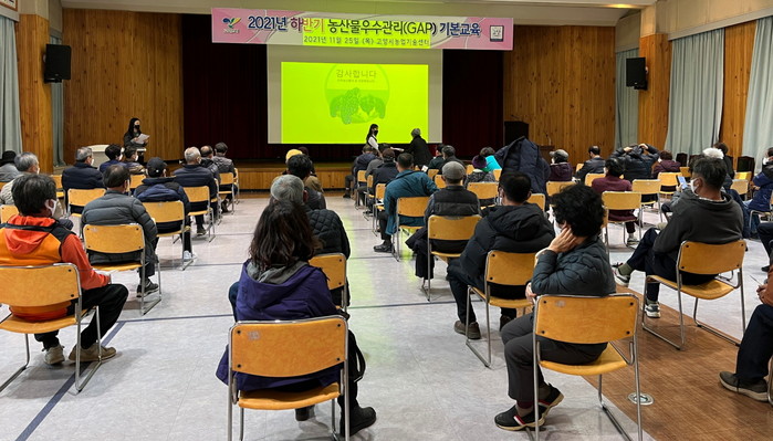 [부자동네타임즈 김인수기자] 고양시는 지난 11월 25일 65명의 농업인이 참여한 가운데 농업기술센터 대강당에서 ‘2021년 하반기 농산물우수관리(GAP) 기본교육’을 실시했다.