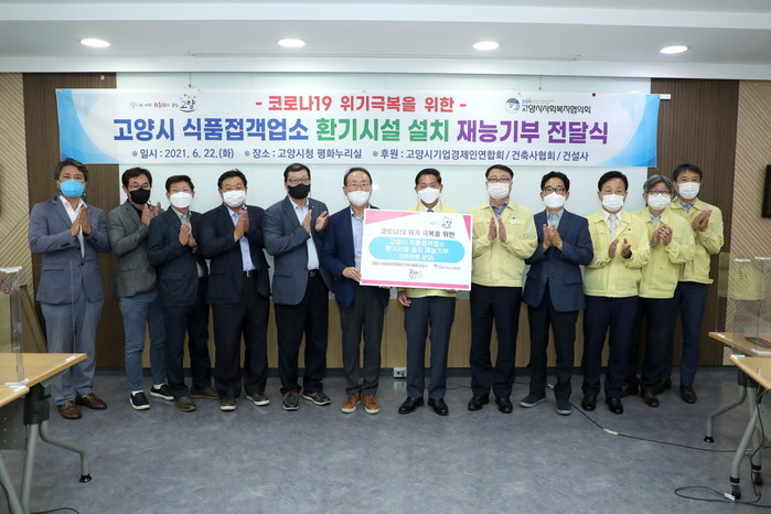 [부자동네타임즈 김인수기자] 고양시는 지난 6월 22일 코로나19 감염에 취약한 관내 식품접객업소 환기시설 설치 지원을 위한 재능기부 전달식을 고양시청에서 가졌다.