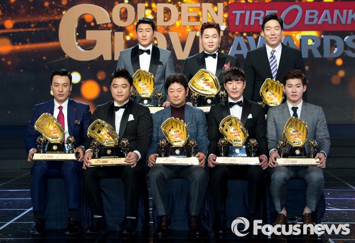 (서울=포커스뉴스) 프로야구 포지션별 최고의 선수들이 가려졌다. 올시즌 한국야구위원회(KBO) 리그 등록선수 628명 중 10명 만이 황금장갑의 주인공이 됐다. 8일 서울 양재동 더케이호텔서울에서 열린 '2015 타이어뱅크 KBO 골든글러브 시상식'에서다.