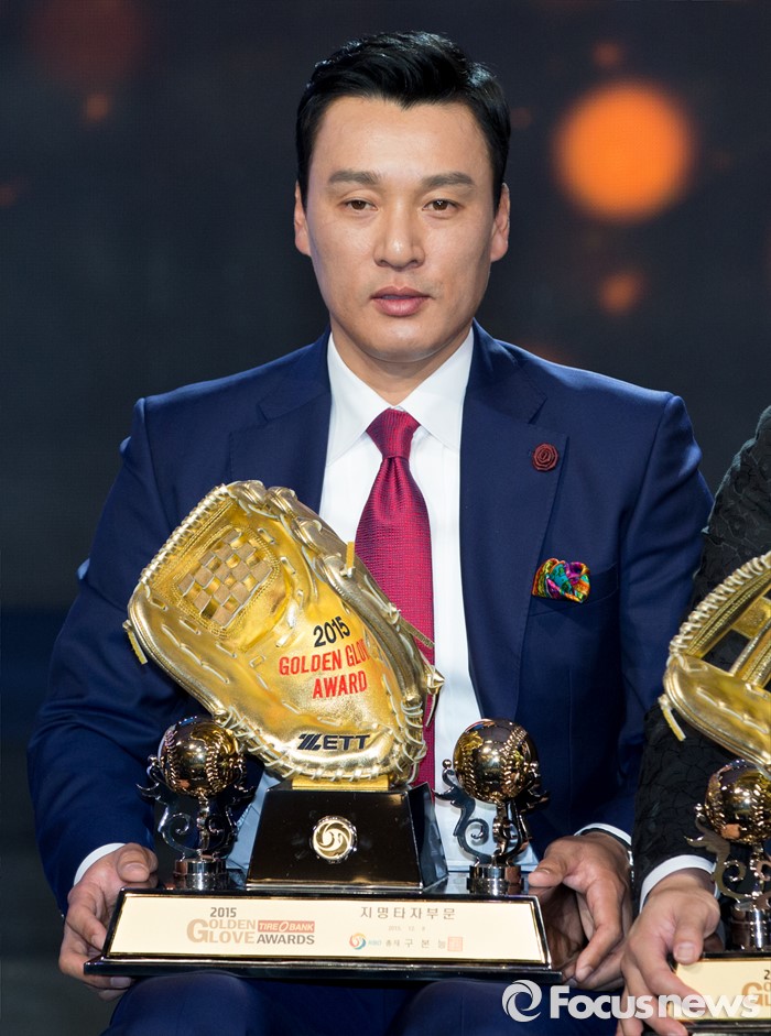 | △ 8일 오후 서울 서초구 The-K호텔에서 열린 2015 KBO 골든글러브에서 지명타자부문을 수상한 삼성 이승엽이 기념촬영을 하고 있다. <사진제공=포커스뉴스> |