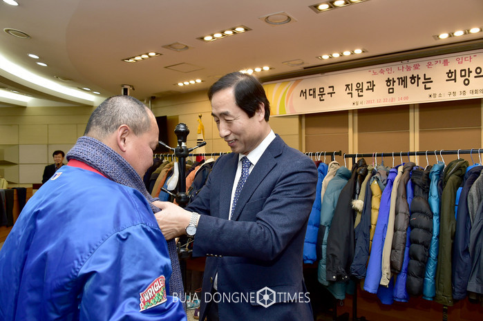 문석진 서대문구청장도 이날 행사를 위해 외투와 점퍼, 머플러를 기증했다.