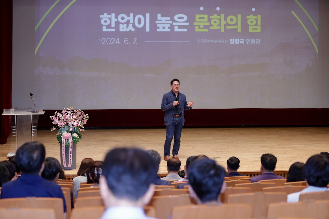 이날 월례조회 5선 국회의원과 제45대 문화체육관광부 장관을 역임한 정병국 한국문화예술위원회 위원장이 ‘한없이 높은 문화의 힘’을 주제로 특강을 진행했다.