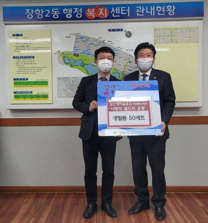[부자동네타임즈 김인수기자] 고양시 장항2동(동장 한민수)은 지난 25일 일산새마을금고(이사장 홍두표)로부터 ‘사랑의 좀도리운동’ 후원물품 50세트를 전달받았다고 밝혔다.