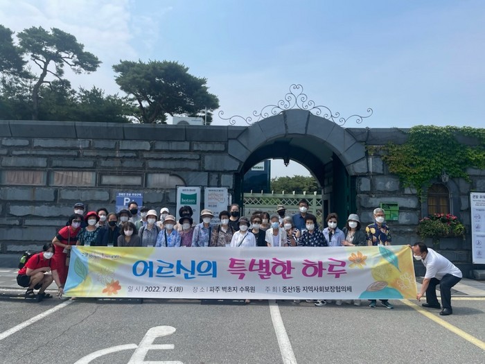 [부자동네타임즈 김인수기자] 고양특례시 중산1동 지역사회보장협의체가 취약계층 어르신 15분을 모시고 파주시 벽초지 수목원으로 나들이 행사를 다녀왔다고 7일 밝혔다.