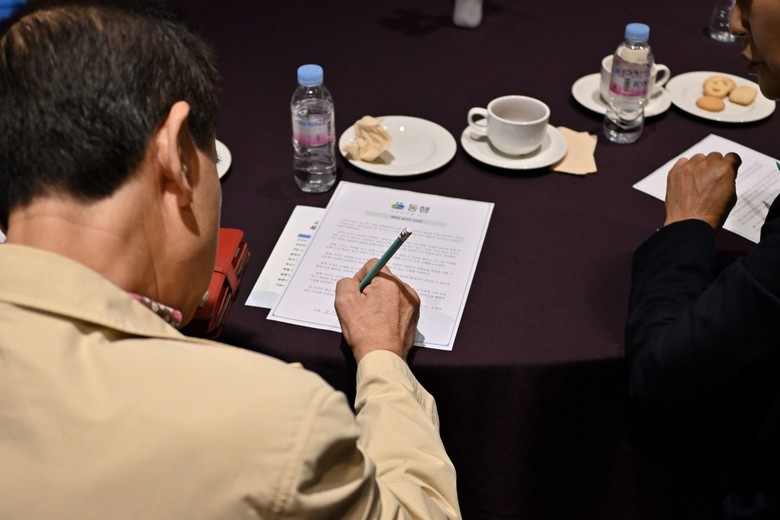 | ▲지난 19일 구로 롯데시티호텔에서 HWPL 글로벌08지부 ‘동행 캠페인’ 발대식이 진행된 가운데 참석자들이 동행 협약서에 서명을 하고 있다. [사진 제공 = HWPL 글로벌08지부] |
