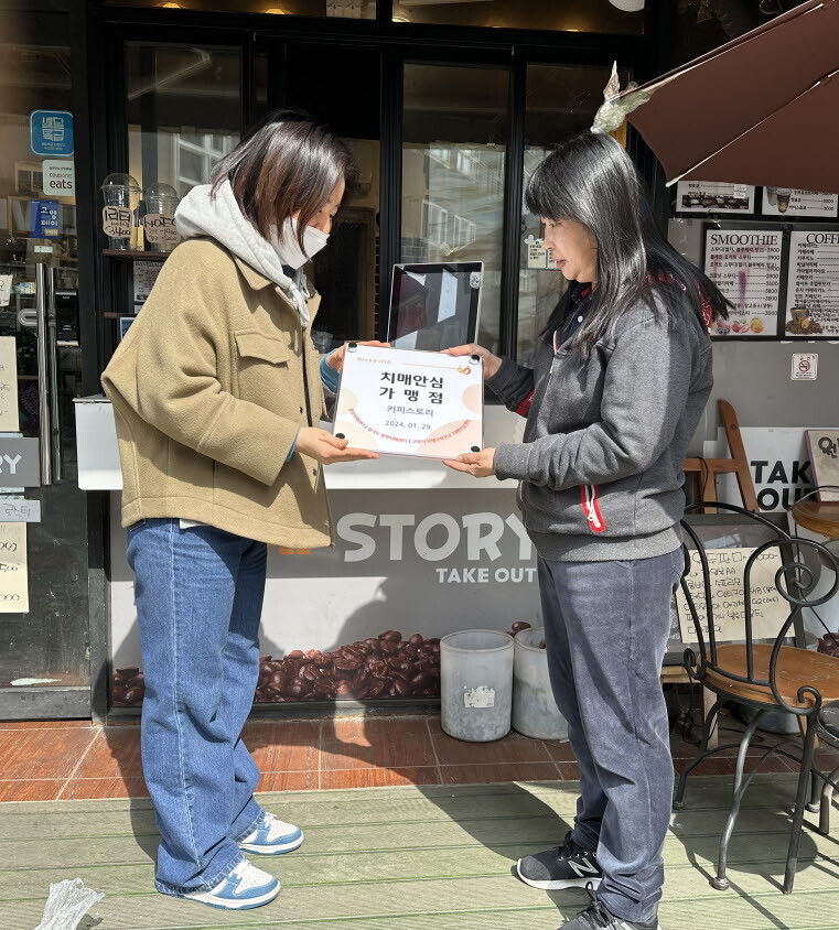 치매안심가맹점은 현판을 부착하여 관내 주민들의 치매에 대한 관심을 유도하고, 참여 상점들이 치매극복의 주체로서 치매환자와 보호자 배려에 앞장서서 치매 친화적 사회문화 조성하는 데 큰 역할을 담당하고 있다.