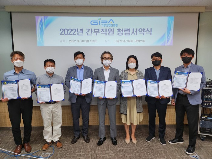 [부자동네타임즈 김인수기자] '고양산업진흥원(원장 오창희, 이하 진흥원)은 9월 26일 주요 간부직원 및 신규직원이 참석한 가운데 청렴서약식을 가졌다.