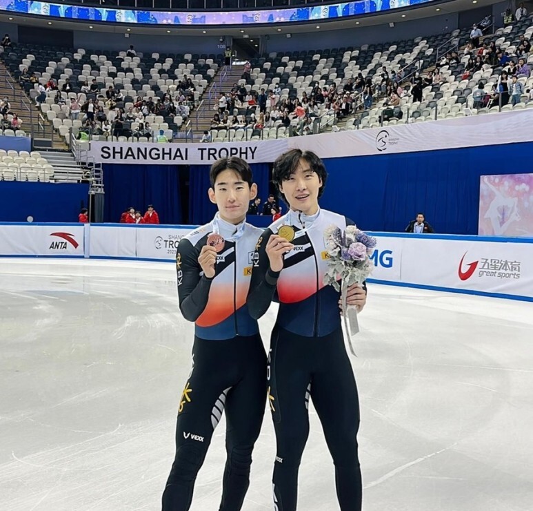 [사진설명] 2023 상하이트로피 쇼트트랙대회에서 메달 획득한 홍경환(좌), 임용진(우) 선수.