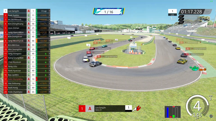 초반에는 이상진(24) 선수, 박윤호(18) 선수, 임재혁(27) 선수가 각각 1,2,3위로 레이스를 진행하였다. 3 LAP부터 박윤호(18) 선수가 선두 자리를 무섭게 노리는 모습이 보였다. 6 LAP에서 아웃코스 추월을 시도하던 박윤호(18) 선수가 PTP를 사용하며 결국 이상진(24) 선수를 추월하였으나, 실수를 하며 이상진(24) 선수에게 다시 추월 당하는 모습을 보여 긴장한 모습을 감추지 못하였다.