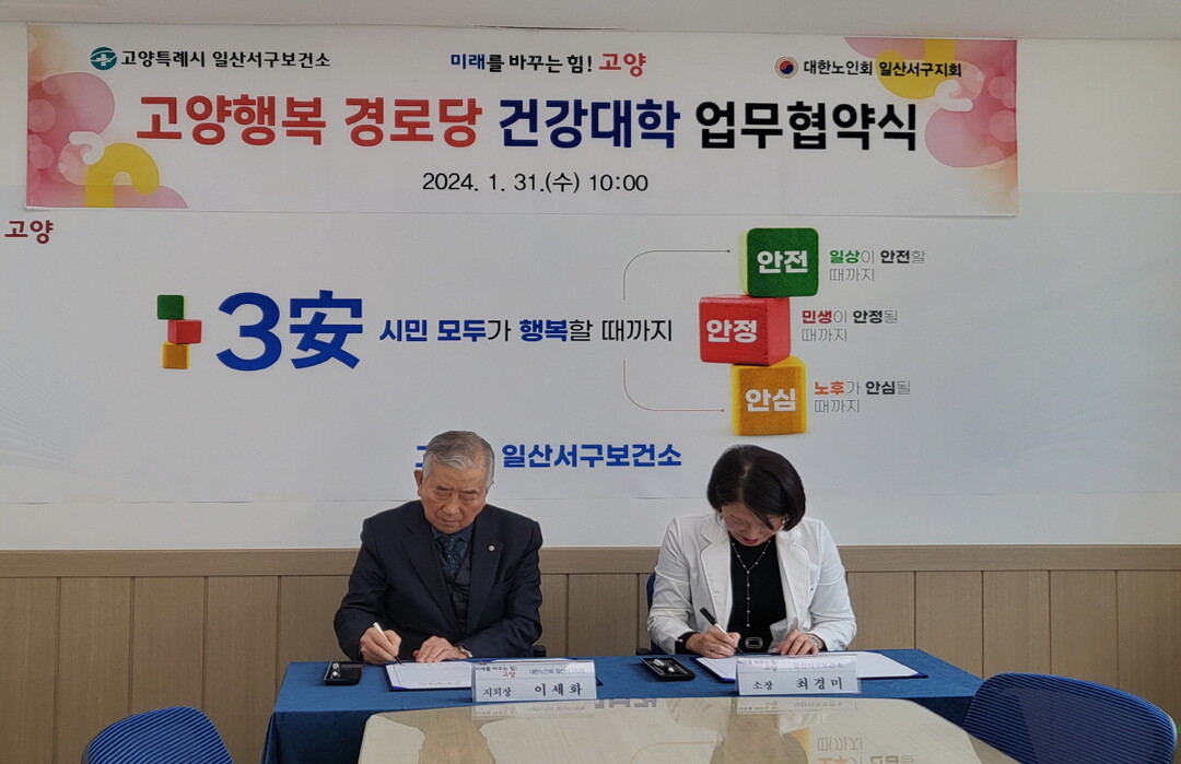 [부자동네타임즈 = 김인수 기자] 고양특례시 일산서구보건소는 지난 31일 대한노인회 일산서구지회와 업무협약을 체결했다고 밝혔다.