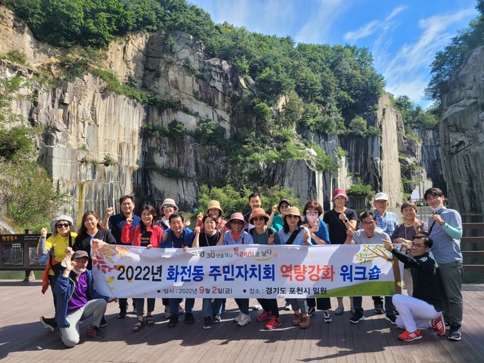 코로나19 상황으로 3년 만에 개최된 이번 워크숍은 주민자치회 위원들 간의 소통의 기회와 역량 강화를 위해 마련됐다. 위원들은 포천시의 산정호수와 아트밸리를 차례로 방문해 자연 속에서 힐링하며 친목을 도모하는 시간을 가졌다. 특히, 폐채석장을 문화공간으로 재탄생시킨 아트밸리를 둘러보며 화전동 실정에 맞는 자체사업 발굴에 대한 다양한 의견을 나누기도 했다.