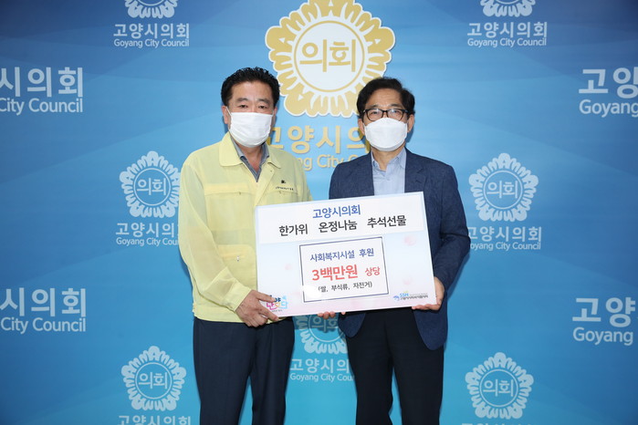 [부자동네타임즈 김인수기자] 고양시의회(의장 이길용)는 9월 25일(금)에 민족 최대 명절인 추석을 앞두고 주변의 어려운 이웃과 따뜻한 정을 나누고 마음을 함께하기 위해 고양시사회복지협의회에 후원물품을 전달했다.