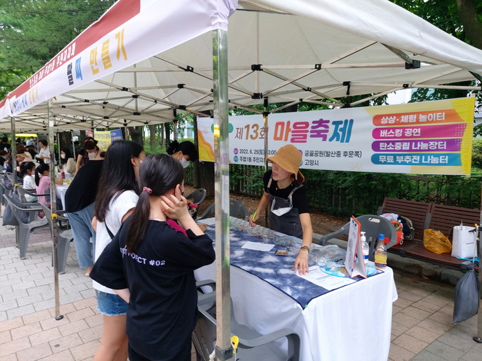 또한, 주엽1동 주민자치회가 ‘나눔장터’로 함께 참여해 탄소중립 실천과 지역 경제 활성화를 위한 프로그램을 운영해 재활용, 새활용품의 교환 외에도 소창 행주만들기, 고체 치약 만들기 등을 진행해 지역주민의 참여를 높였다.