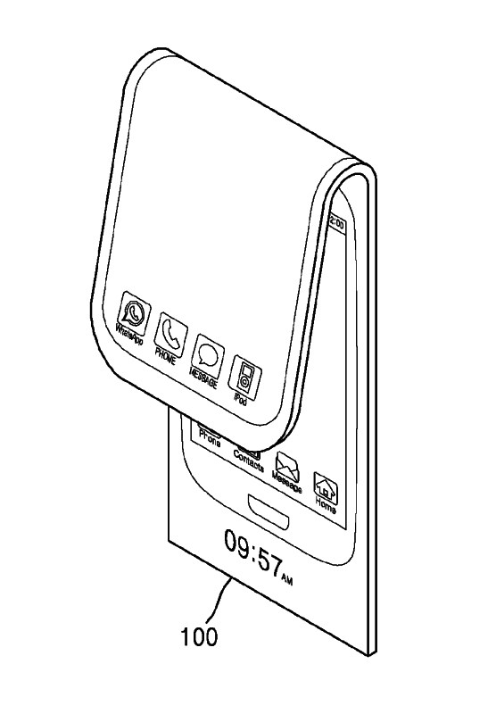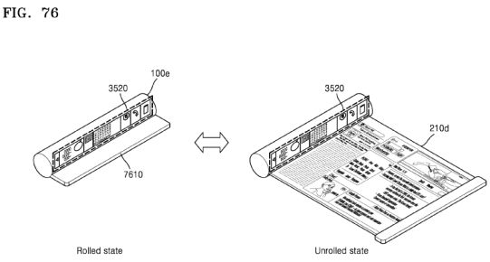 돌돌 말 수 있는 두루마리 형태의 디자인도 제시했다. 말려 있는 부분은 메뉴 형태로 사용할 수 있고 펼쳐진 부분은 메인 스크린이 되는 디자인이다.
