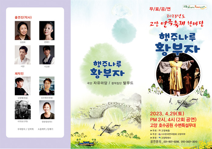 2023 고양연극축제 한마당은 고양예총이 주최하고 고양시가 후원한다. (사)한국연극협회 고양지부 전문공연단체인 극단 ‘자유마당’과 창작집단 ‘탈무드’가 전통 연희극 ‘행주나루 황부자’를 선보인다.